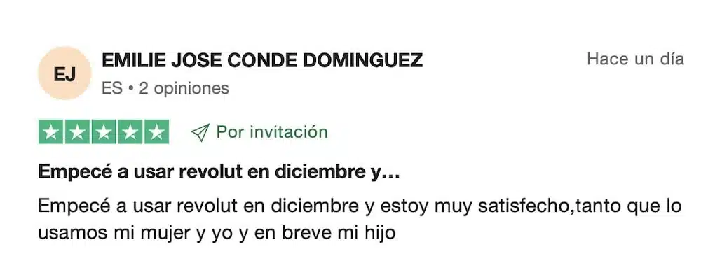En esta otra opinión positiva de Revolut, un cliente destaca que comenzó a usar la tarjeta Revolut, opiniones incluidas, en diciembre y que está muy satisfecho con ella.